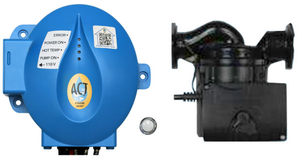 The D'MAND Kontrols® pump systems include an electronic circuit board, thermosensor, and an internal check valve. The ACT1 pump is suitable for use in buildings up to 4,000 sq. ft. using a tankless, tank or heat pump water heater. The 200 Series is suitable for use in buildings larger than 4,000 sq. ft. using a tankless, tank or heat pump water heater. These D'MAND Kontrols® pump systems will handle pipe runs up to 400 total lineal feet. This is the distance measured from the water heater out to the furthest point of the dedicated return line and back to the water heater (out & back).