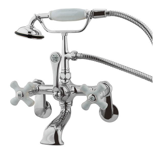 EOD Wall Mount Leg Tub Faucet w/Hand Shower - Porcelain Cross Handles