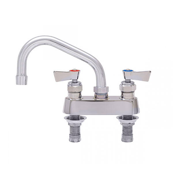• Commercial-grade deck mount faucet designed with a 4" center-to-center configuration for compatibility with standard sink setups.