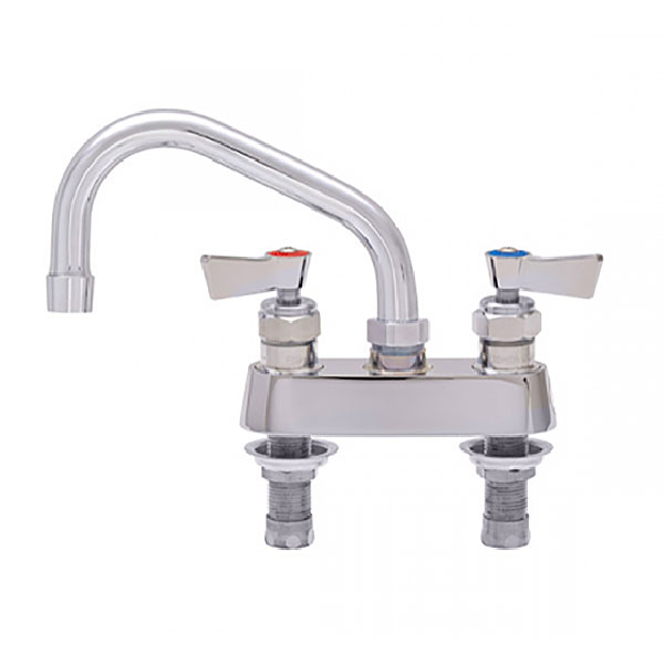 • Commercial-style deck mount faucet designed with 4" center-to-center spacing for straightforward installation on compatible sink decks.