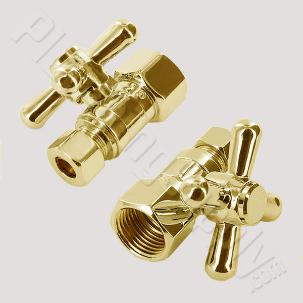 Straight Pattern Cross Handle Quarter-Turn Supply Valve - 1/2" IPS x 3/8" O.D. - Polished Brass