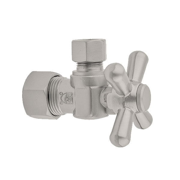 Angle Pattern Cross Handle Quarter-Turn Supply Valve - 5/8" O.D. (1/2" Nom.) x 1/2" O.D. - Polished Nickel