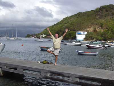 Royal Clipper - Vic doing yoga Vic in yoga pose in front of the Royal Clipper - he cruised on it for 2 weeks in 2010.